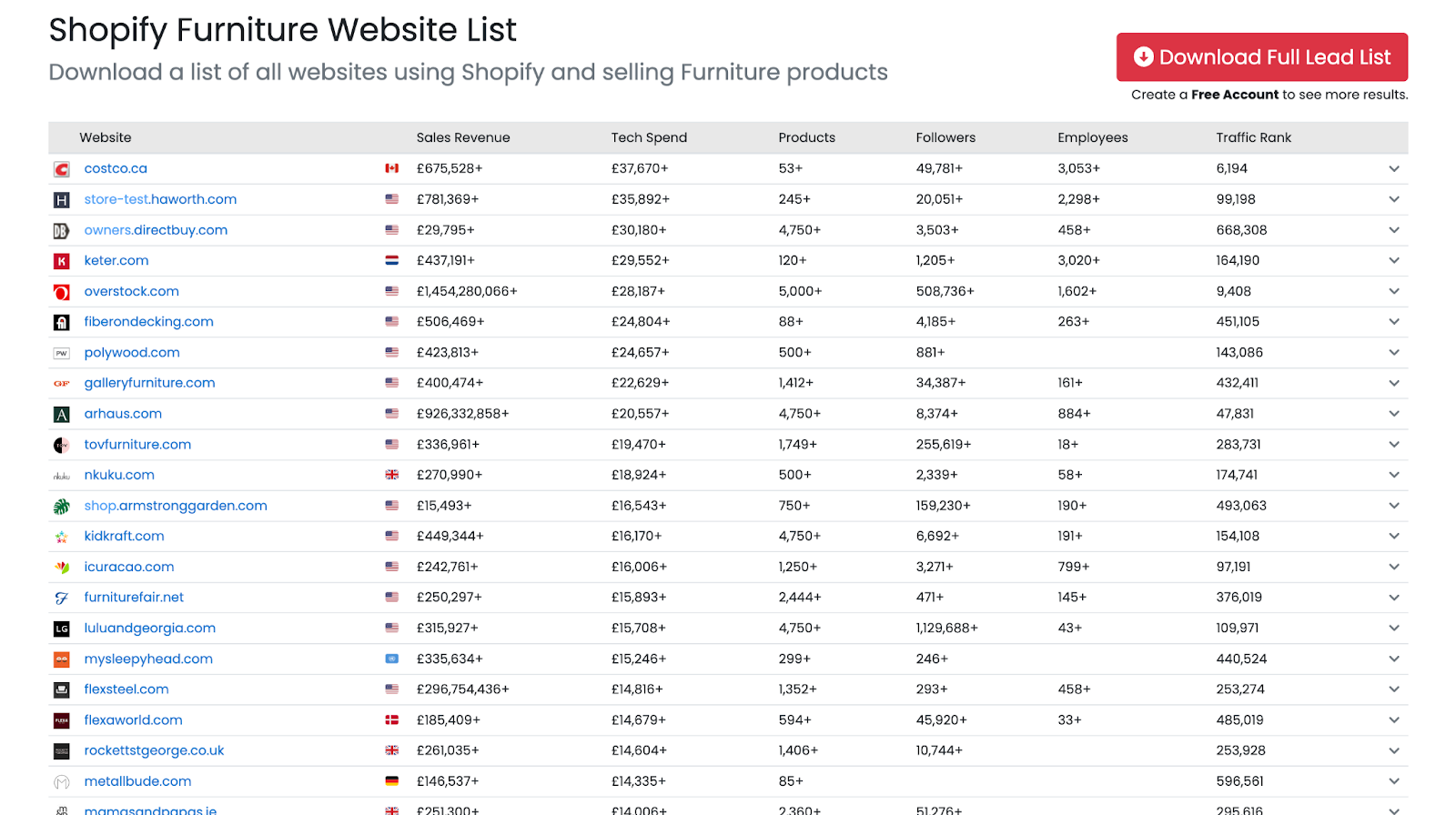 The e-commerce furniture market is expected to grow strongly, from $36.99 billion in 2025 to $39.75 billion in 2026. It is driven by demands for online shopping, smartphone penetration, increased investment in online experience technologies, and a preference for bespoke furniture. There are currently 24,000+ active furniture Shopify stores. Specifically, sofas, chairs, dining chairs/tables, and mirrors are the top furniture pieces sold on both Shopify and Shopify Plus.